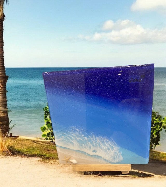 【説明】 イベントで大人気だった15㎝パネルです。 ハワイ・ノースショアの力強くも静かな深い青を表現しました。 そのまま壁に立てかけても、 イーゼルに乗せても可愛く飾れます。 最後に全体をラメ入りのレジンでコーティングしています。 どの角度から見てもキラキラしており表面はツヤツヤです。 【サイズ】 15.0㎝×15.0cm 【ご購入前にお読みください】 ・ハンドメイド作品のため、作品に埃や気泡、凸凹やムラなどが発生している場合がございます。ご了承頂ける方のみ、ご購入をお願い致します。 ・レジンの性質上、直射日光による劣化や高温で作品が変形することがございます。お取り扱いには十分ご注意ください。 ・写真はiPhoneで撮影しておりますがモニターやデバイスによって実物の色味が異なって見えることがあります。 ・送料込のお値段です。 ◆ハンドメイド作品をご理解いただける方のご購入を何卒お願い致します。